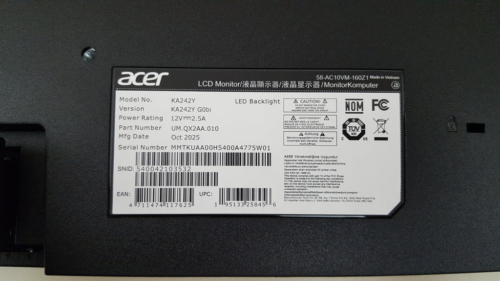 - - - NEW 23.8” ACER "KA242Y G0bi" Full HD IPS HDMI/VGA Color LCD/LED Monitor - - -