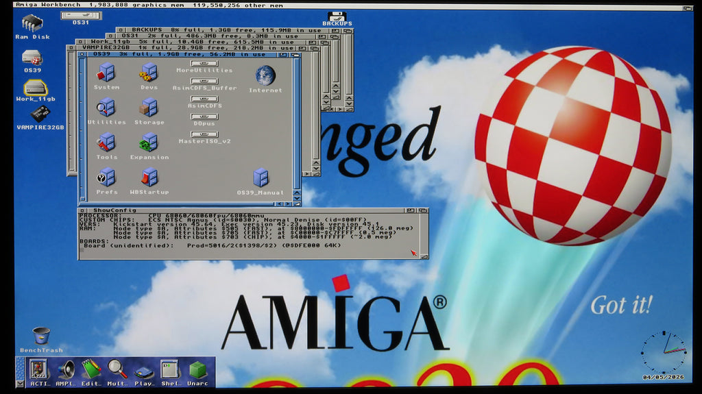 v3.1 Kickstart ROM (on Vampire), DKB 2MB MegAChip CHIP RAM, OCS 8362R8 Denise